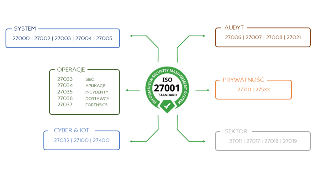 Co istotne, rodzina ta wykracza poza „czyste” 27001 – obejmuje również normy powiązane (np. z obszaru zarządzania ryzykiem czy ciągłości działania), które pomagają w prawidłowej analizie i implementacji wymagań.
